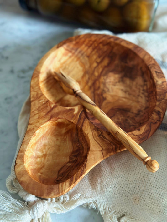 Olive Wood Tapas Dish w/Handle - BACK IN STOCK