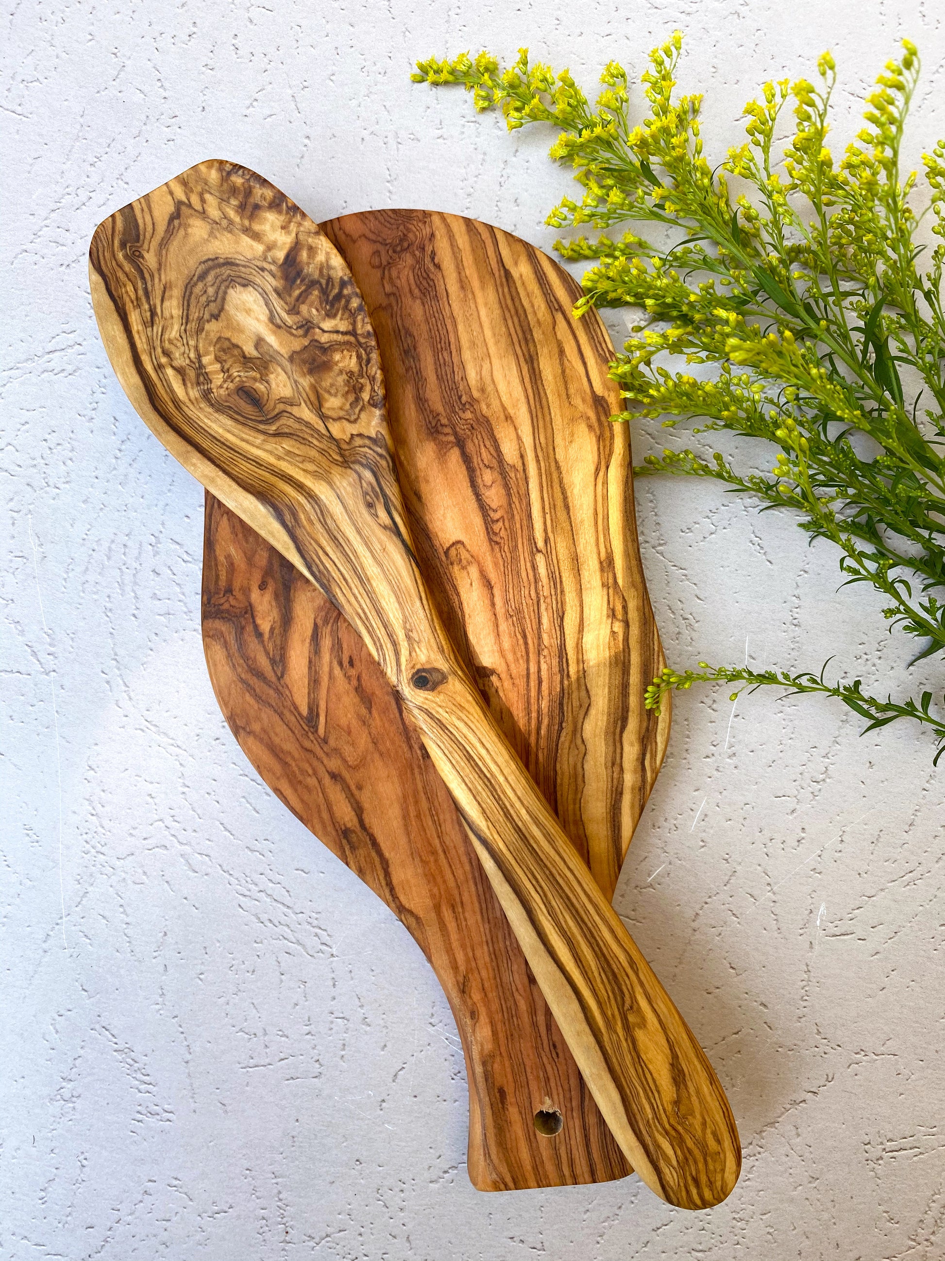 This olive wood flat edge spoon works best for sautéing or flipping! It’s like a spoon + spatula in one & a must have in every kitchen!