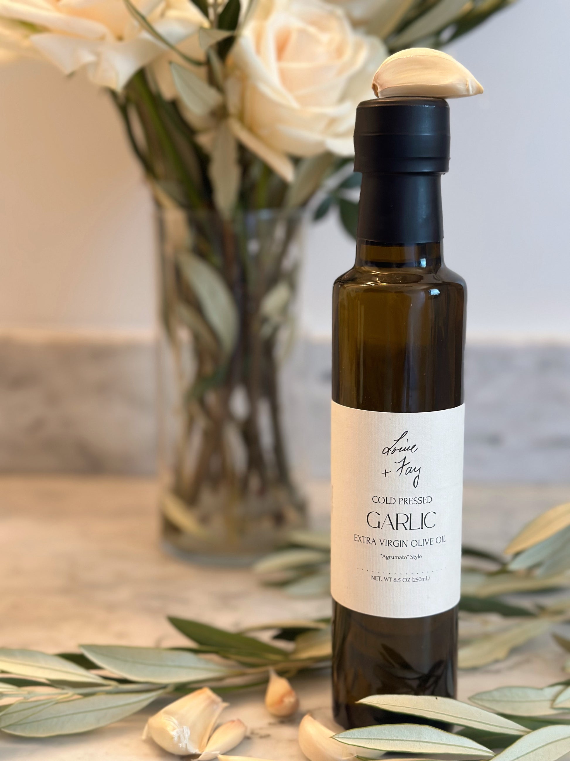 This olive oil was made by sending fresh garlic cloves with the olives through the mill. Many flavored olive oils are infused with extracts or flavorings, this is as pure as it comes! A little goes a long ways.