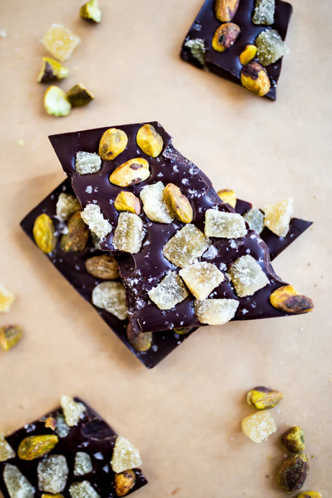 This GORGEOUS handcrafted Chocolate Bar has one side covered with dried Cherries + Orange Peel, the other side with a floral design. One of my personal FAVORITES!