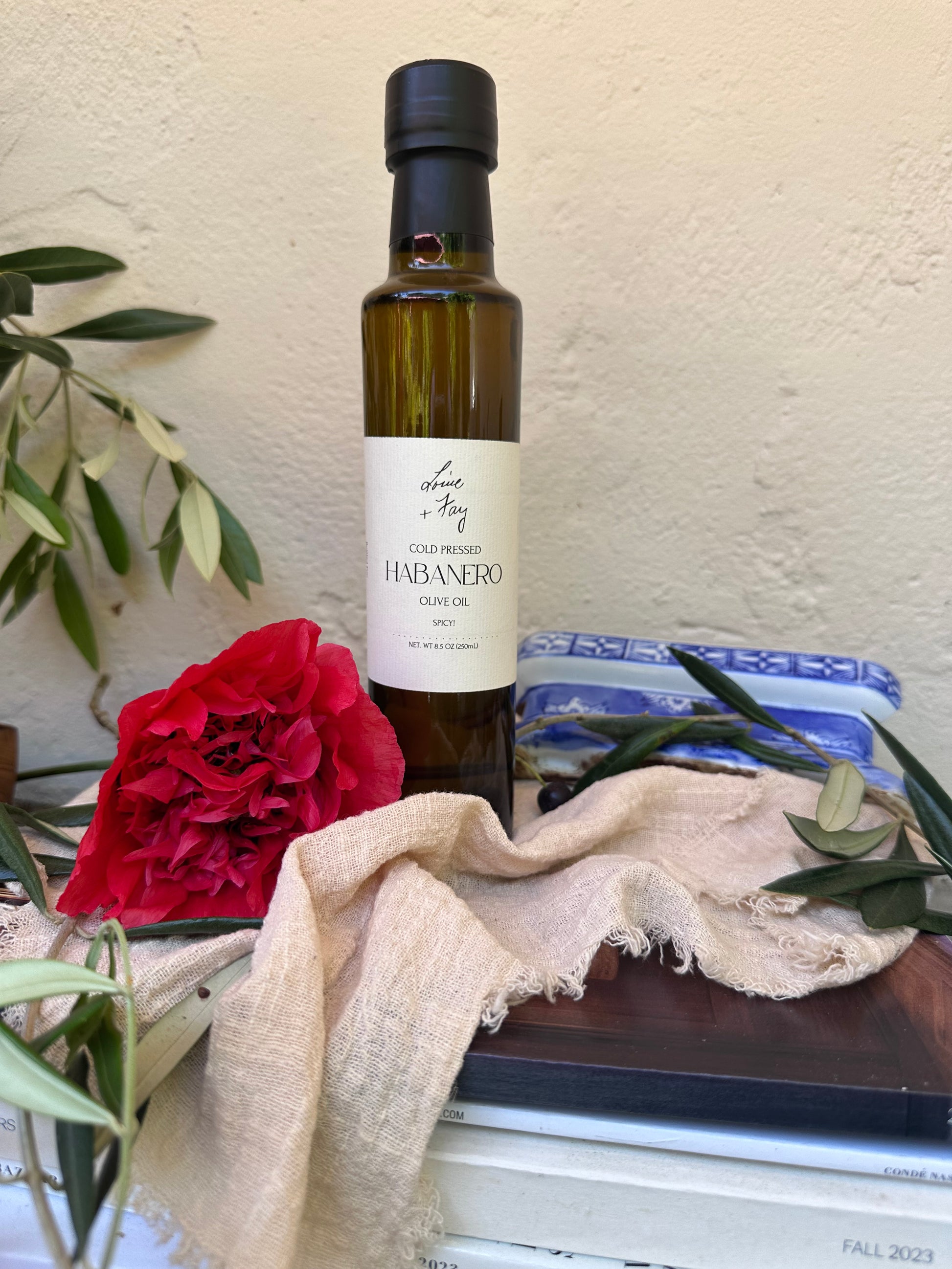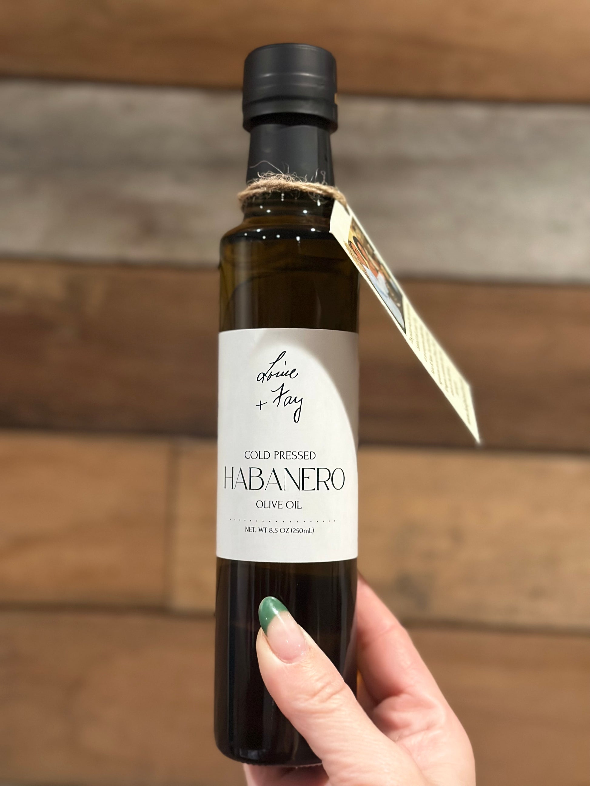 This olive oil was made by sending habanero peppers with the olives through the mill. Many flavored olive oils are infused with extracts or flavorings, this is as pure as it comes! A little goes a long ways.