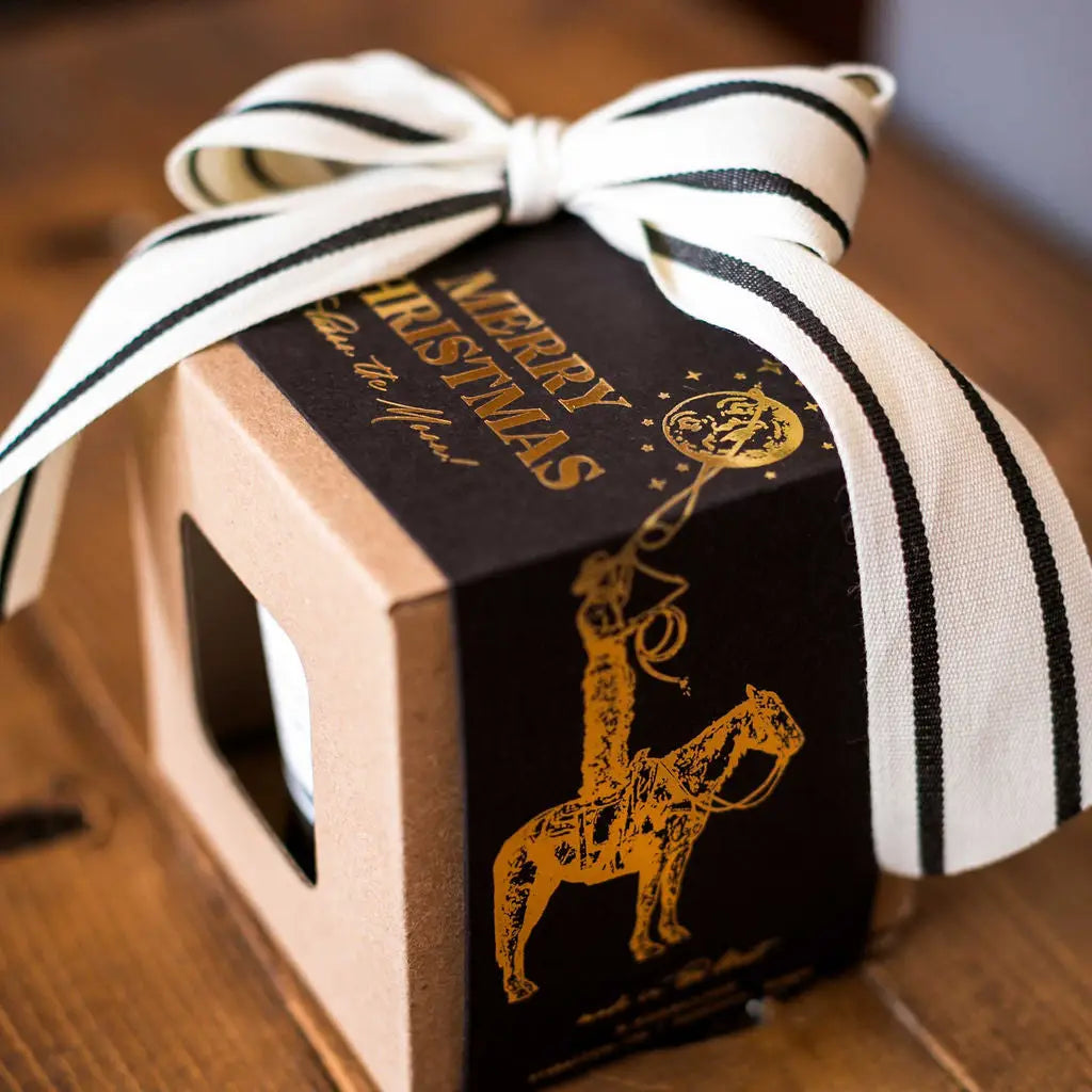 Inspired by the timeless holiday classic 'It's a Wonderful Life' with a touch of Western charm, the Lasso The Moon candle captures the spirit of the season.