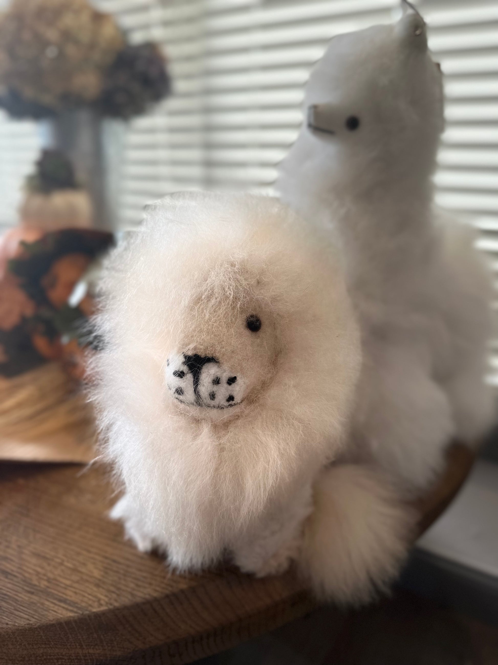 The SOFTEST stuffed animal you will ever touch! Made with 100% baby alpaca fiber.This super-soft hypoallergenic stuffy will make the best gift for that next baby shower or Holiday gift. These are medium sized- 9 inches tall!