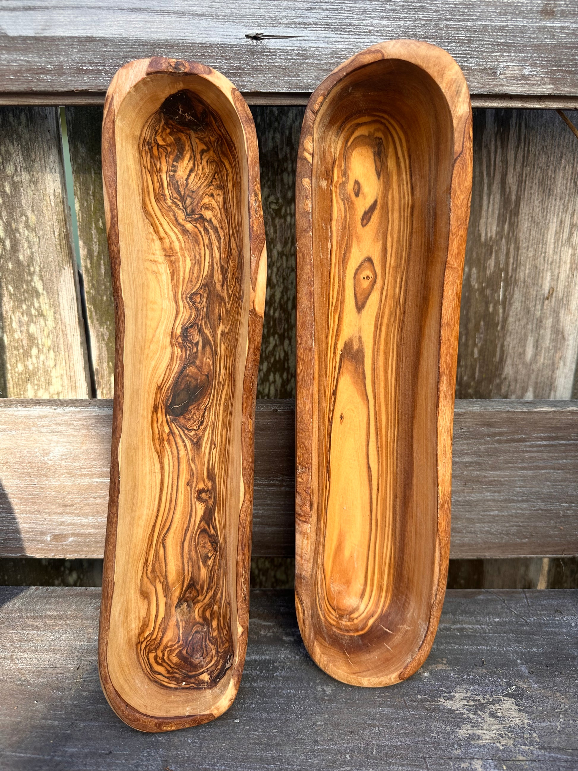 15 x 4''// handcrafted in the Mediterranean from trees that are over 100 years old that no longer produce olives - shape & color may differ