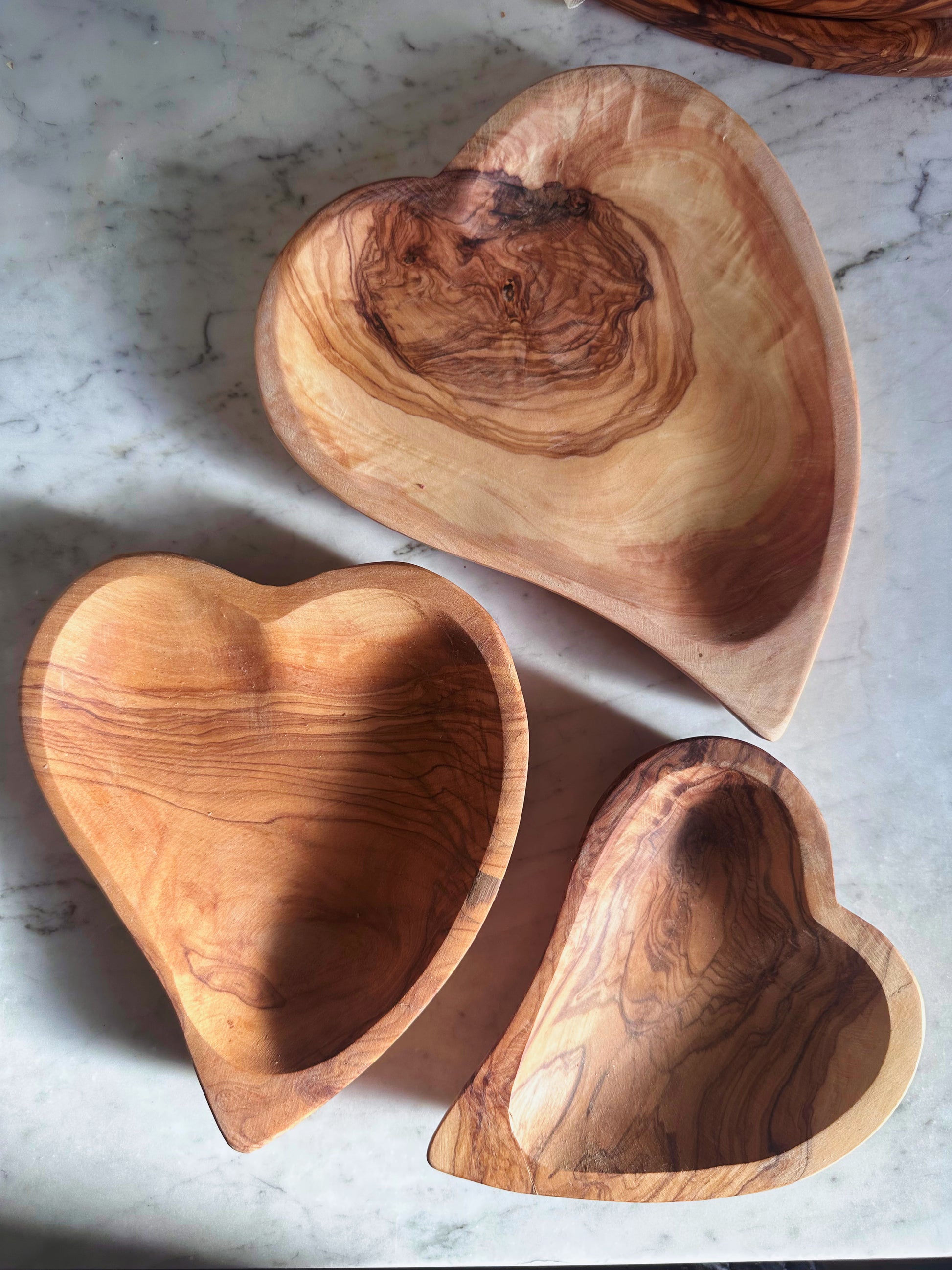 Olive Wood Heart Dish Trio