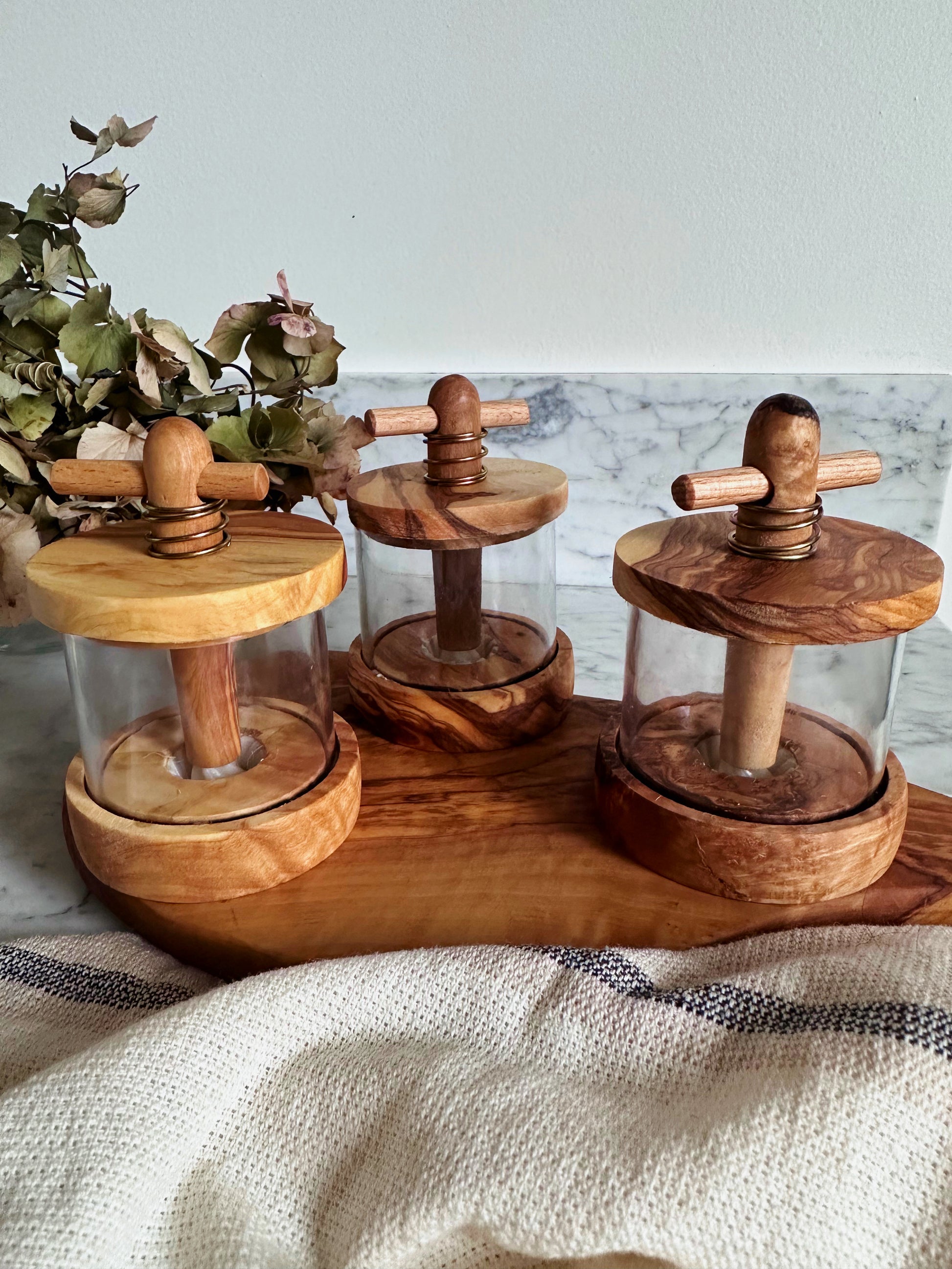 Use this beautifully hand made olive wood grinder for the freshest flavor into every dish! Fill it with your favorite herbs, sea salt or pepper. This can go straight from the counter to the table!