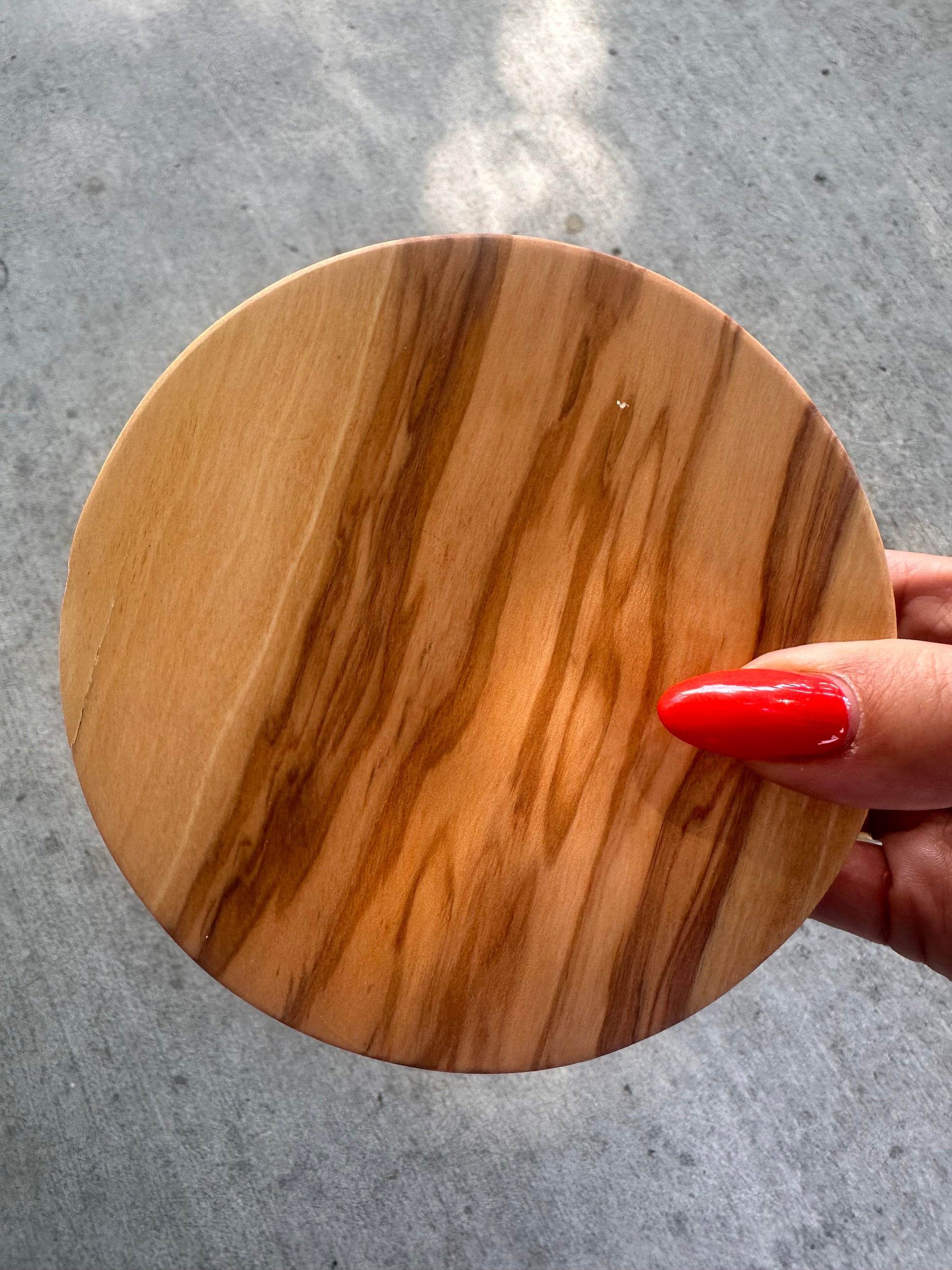 5'' x 5'' // handcrafted in the Mediterranean from trees that are over 100 years old that no longer produce olives - shape & color may differ