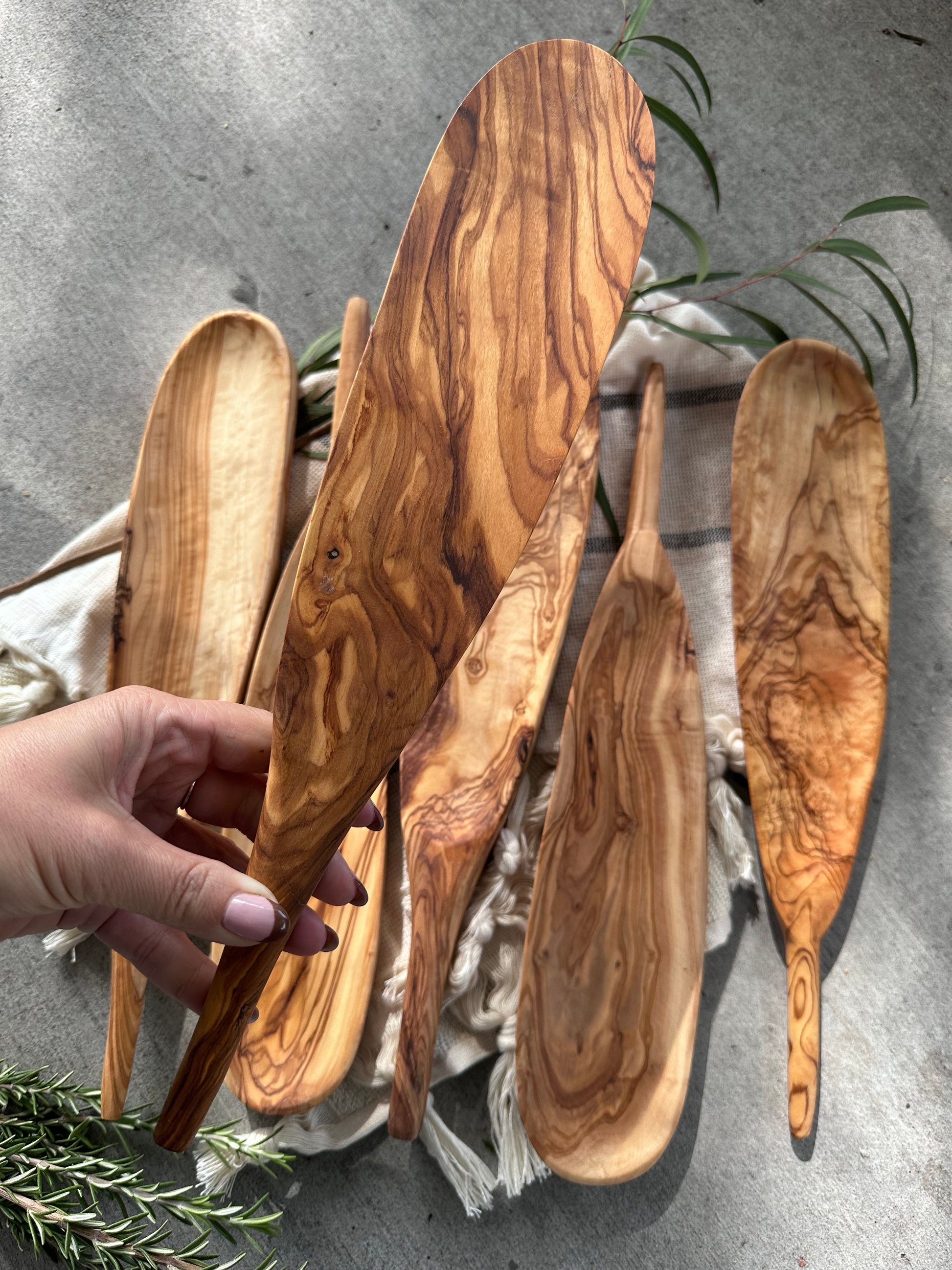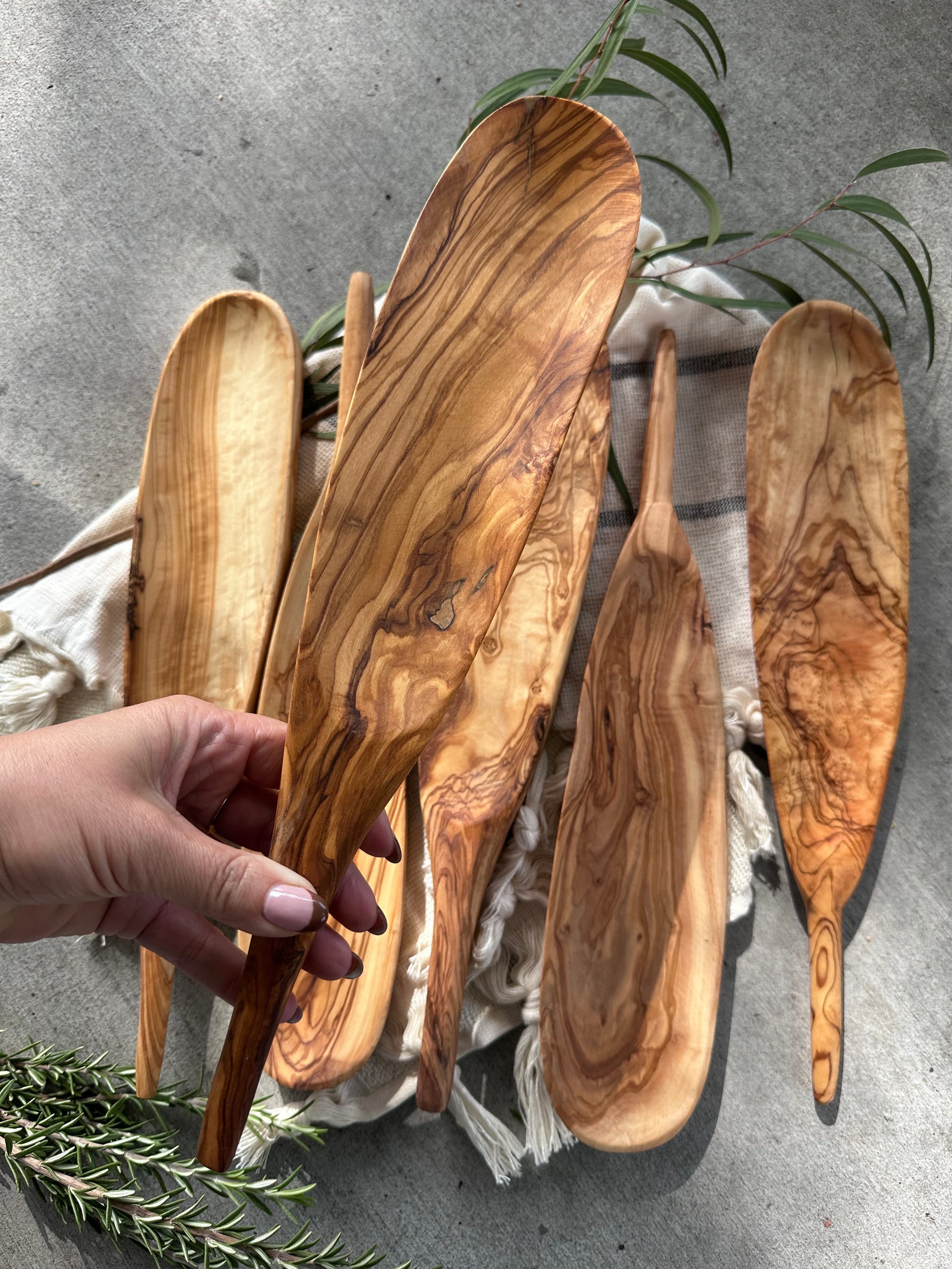 13″ // handcrafted in the Mediterranean from trees that are over 100 years old that no longer produce olives - shape & color may differ