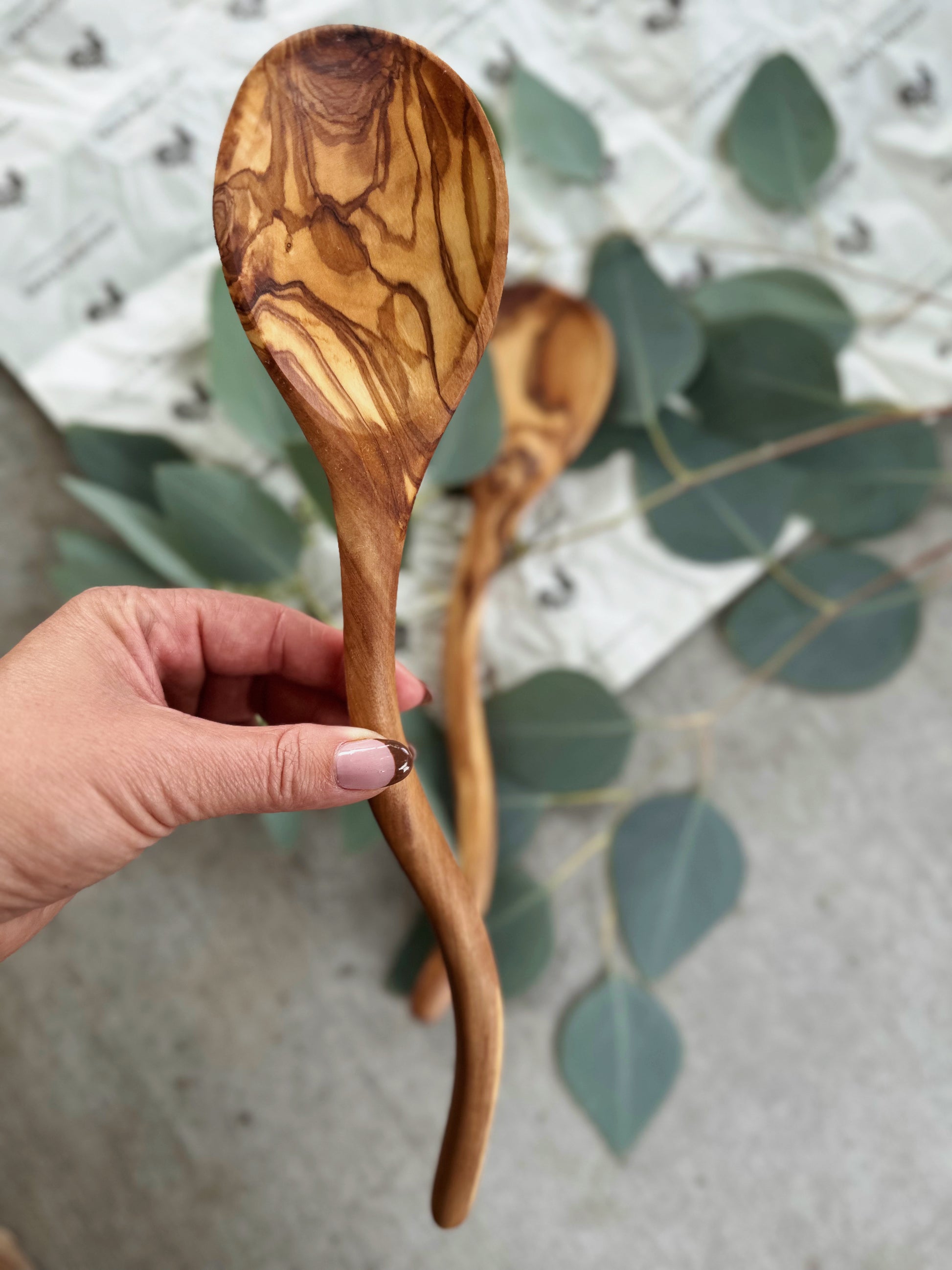 Olive Wood Wavy Handle Spoon (13'')